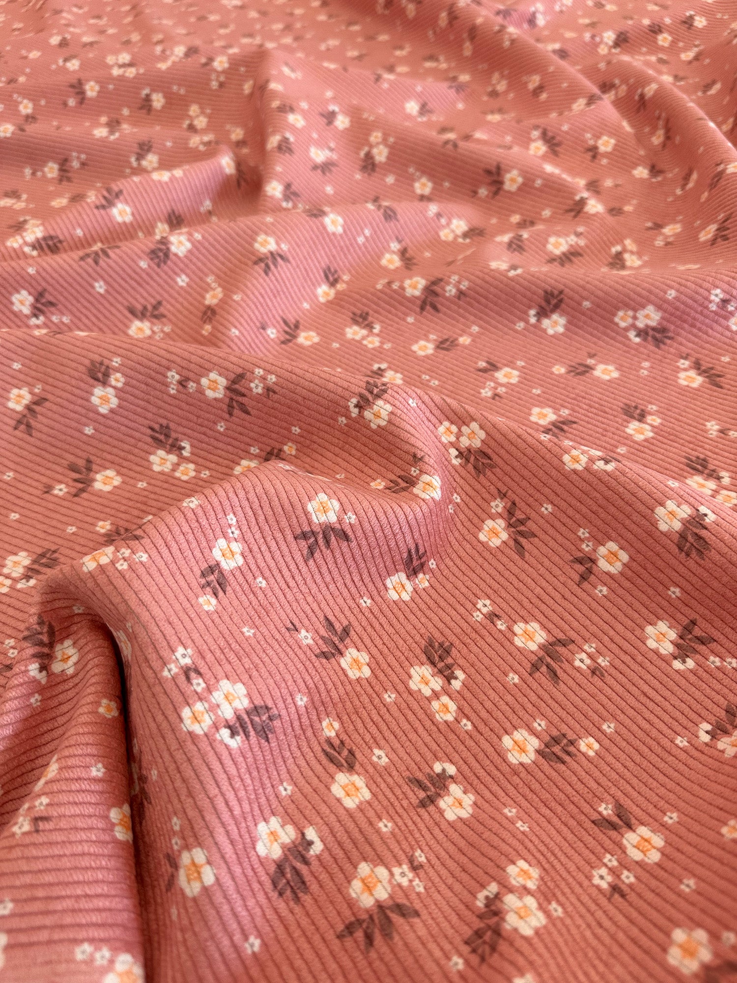 Tecido Malmequeres Rosa Fundo Vermelho - P400