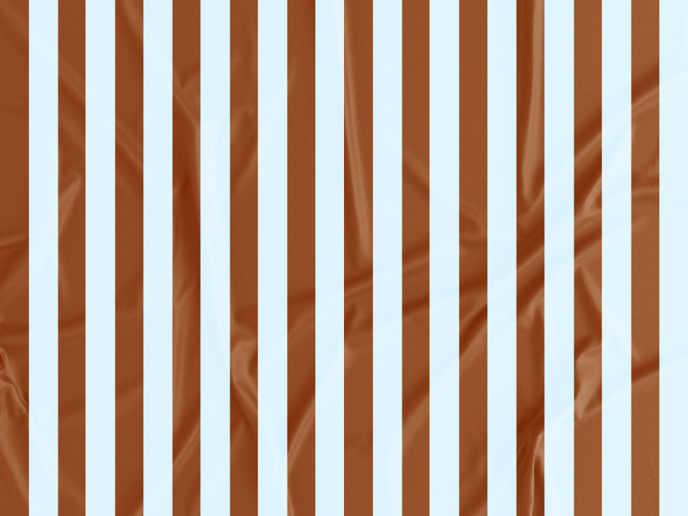 Tecido estampado com riscas azuis e castanhas. As riscas têm 1cm de largura. Caso pretenda aumentar ou diminuir, indique a medida nas notas de encomenda.