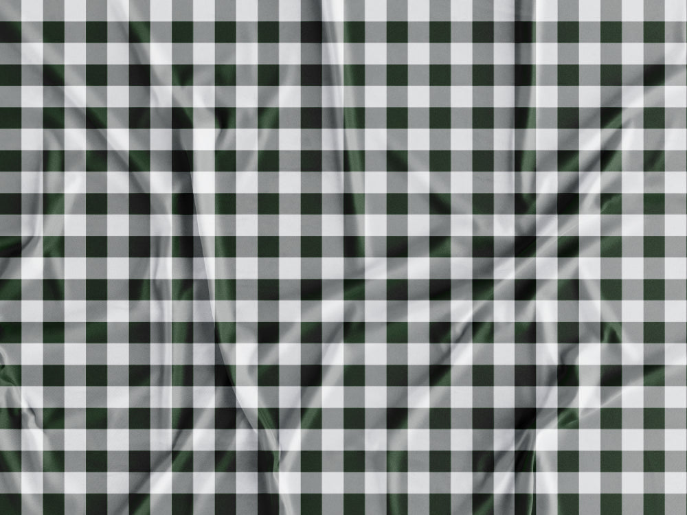 Tecido estampado com padrão vichy em verde escuro. Os quadrados têm 0,05cm.