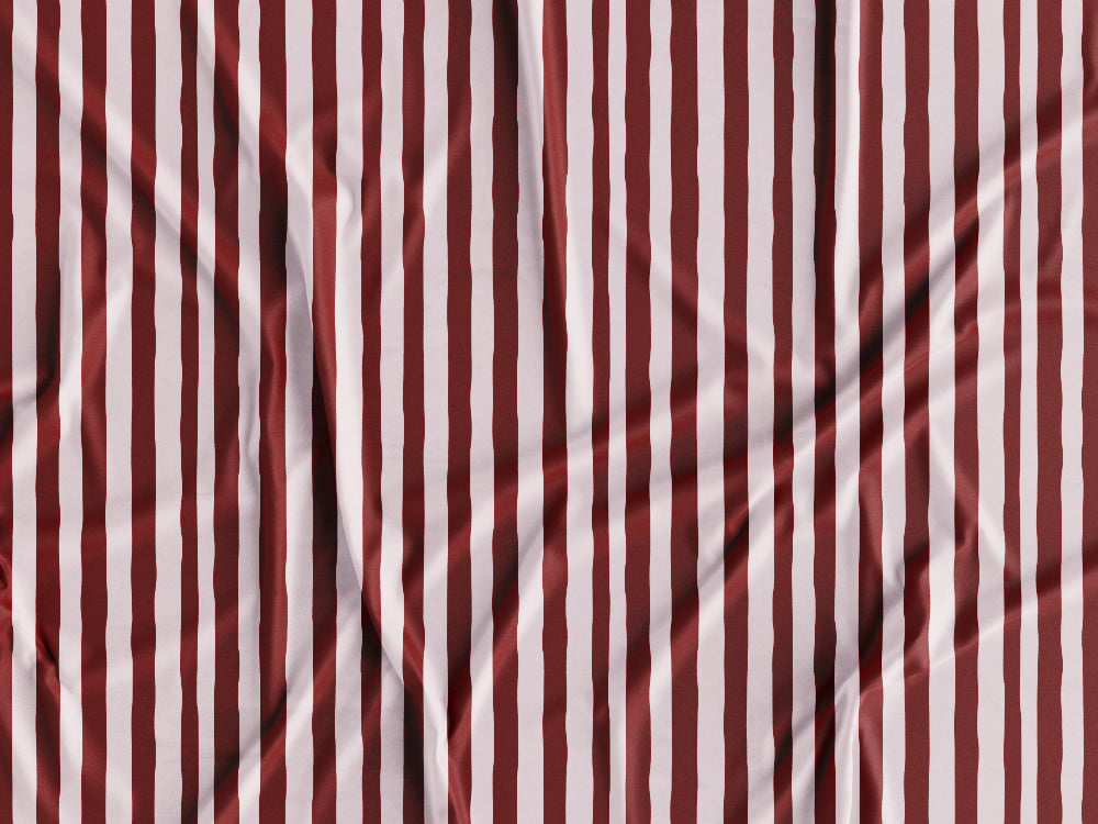 Tecido estampado com padrão de riscas imperfeitas bordô e rosa claro.